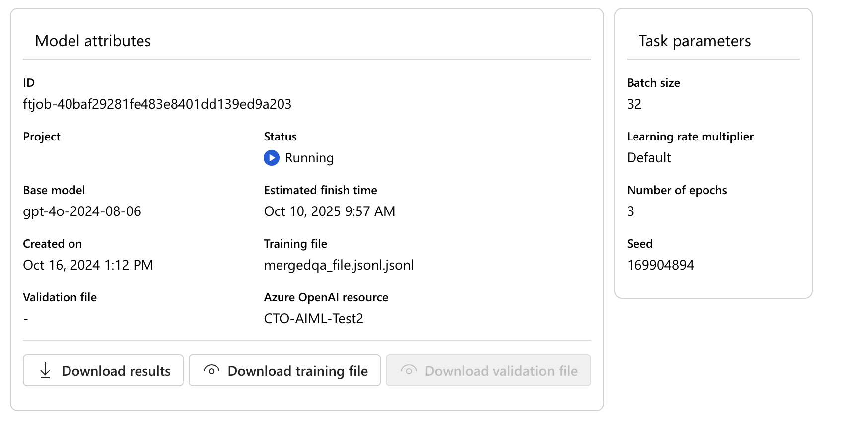 Ask: finetuning using azure openai studio for 3000mb training file is showing 1 yr as estimation time for completion