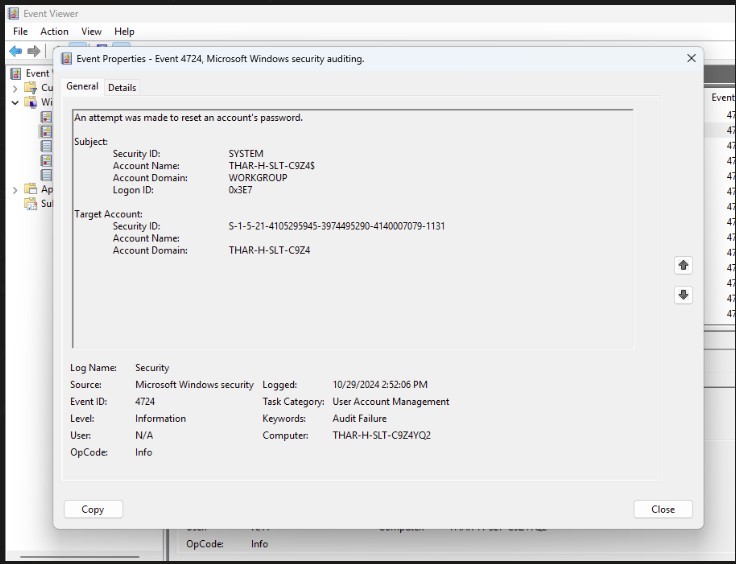 4724(S, F) An attempt was made to reset an account's password. - Windows 10 | Microsoft Learn