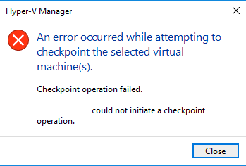An error Occurred while attempting to checkpoint the selected Virtual machine(s).