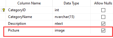 SELECT Picture FROM dbo.Categories WHERE dbo.Categories.CategoryID = @Id;