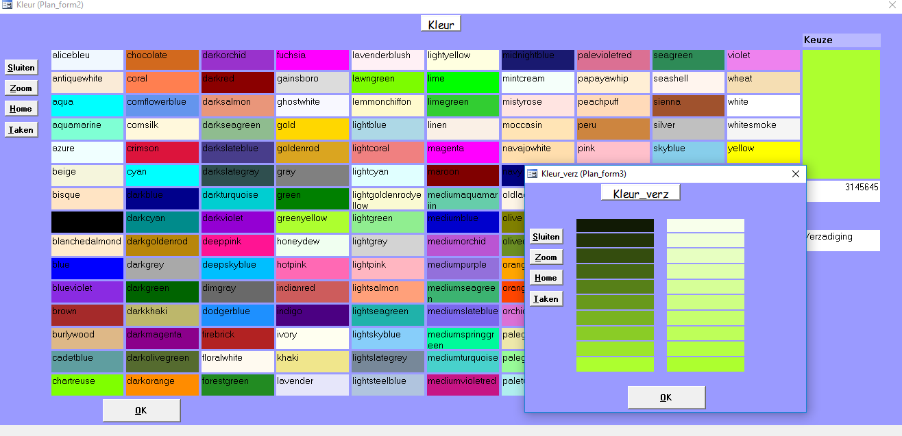 But you can also make subforms with with colorname, colorcode, backcolor etc "aligned" in different controls, and this in a subform control.