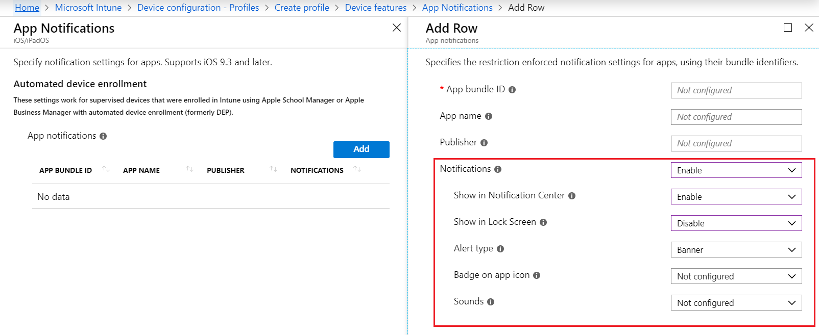 Intune does support for the settings of iOS app notification. But it doesn't support for the control of preview. Please see the screenshot as below.