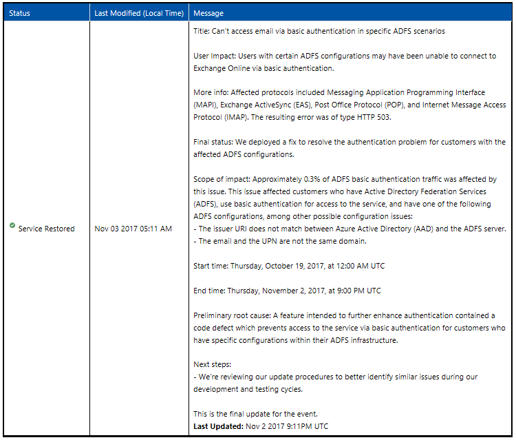 If i configure it manually by typing the password on the app and not at the ADFS screen, it works but IPad gets that error after authenticating with ADFS.