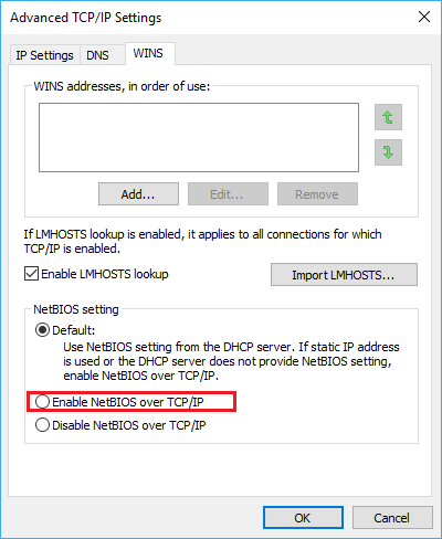 Please also check the option "Enabled NetBIOS over TCP/IP" in TCP/IP Advanced Setting is selected as below.