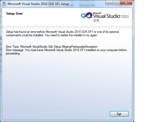 Error message: You must have Microsoft Visual Studio 2010 SP1 installed on your computer before proceeding