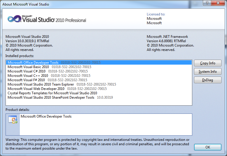 My Microsoft Visual Studio 2010 Version: 10.0.30319.1 RTMRel