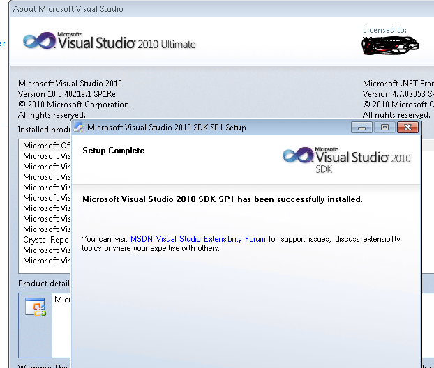 we installing Visual Studio 2010 SDK SP1 setup:-