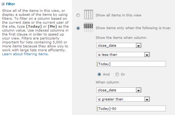 I had this view set up from SharePoint 2.0 that I had to manually update to display past 3 months but now that we are using SharePoint 2010, I was wondering if I can create a dynamic filter.
