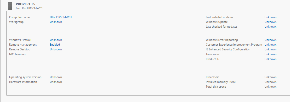 Having a strange error where the Server Manger shows "unknown" for all the local server properties, all other functions appear to work fine... any ideas how to fix this?