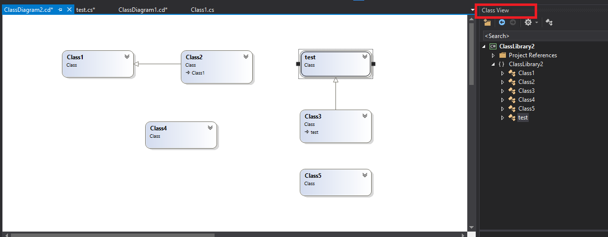 1). Please create a new project, and add a class diagram and some classes to it. To observe whether has the same issue, this method could help us exclude the reasons caused by Visual Studio.
