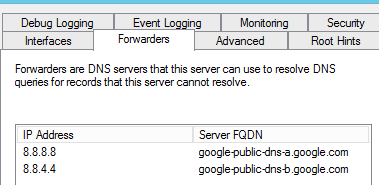 Here are my DNS Forwarders: