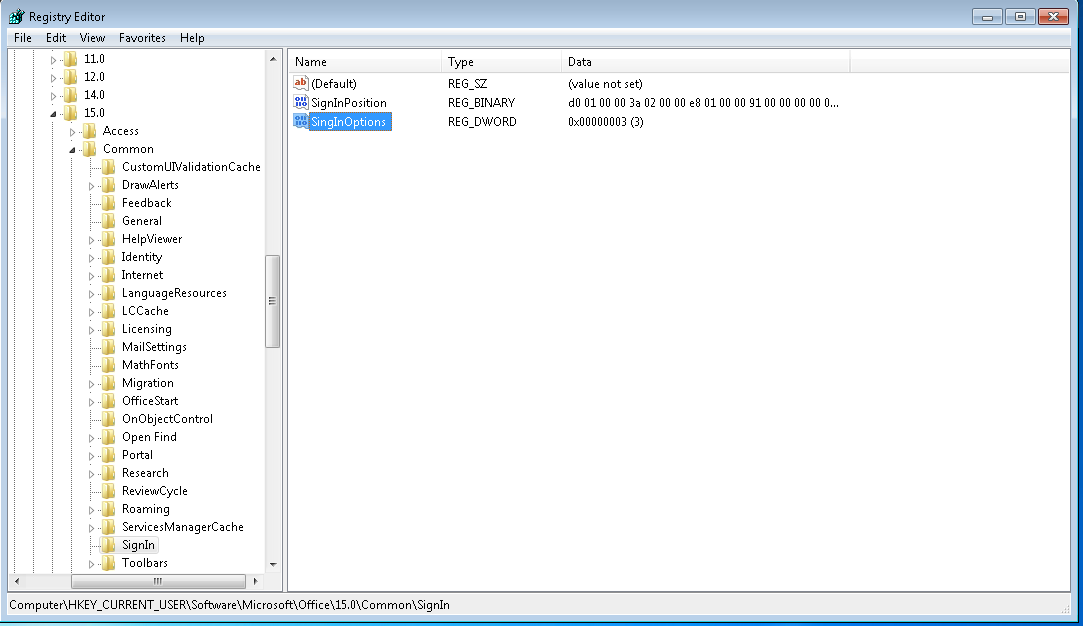 HKEY_CURRENT_USER\Software\Microsoft\Office\15.0\Common\SignIn