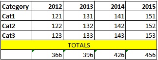I would like to achive following using the datagridview in VB.NET. I am not sure how would I merge the cells to get the row with text as "TOTAL".