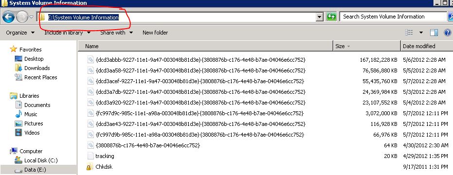 My System Volume Information folder on my Win 2008 R2 is over 300GB, total partition size is 3.7 TB. I'm using this partition to store third party backup software files. maybe a 100 files, that is all what this drive has. When I tried to delete some older System Volume Information files, nothing happens. I do not get permission denied or anything!! How can I reduce the size of this folder? Shadow copies is disabled on all partitions.