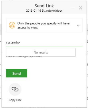 5. Select another document (document B) -> Share -> Specific people -> typing the name of the group, it still cannot find this group and return “No results”.