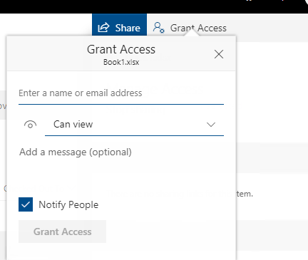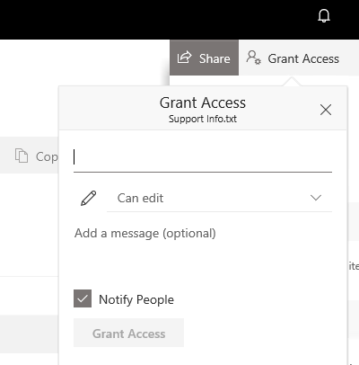 Using “Grant Access”, you can grant specific access to a given user account, or grant access to an Office 365 Group, a security group, or a SharePoint group.