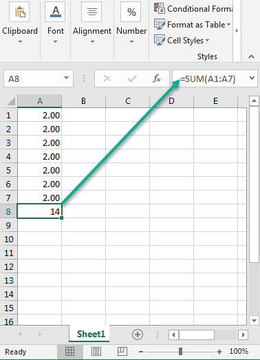 doc.SetCellValue(8, 1, "=Sum(A1:A7)");