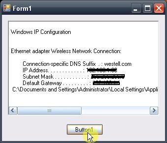 As Armin has said, you may be able to get the info you want using the System.Net.NetworkInformation namespace without going threw the hassle of reading and parsing the text returned from the command window to get just the part you want. However, if you still want to read the output from the command window then here is a one way of using a Process and redirecting the output. You can test it by creating a new Form project and adding 1 Button and 1 RichTextBox to it. Then use the code below.