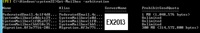 The most confusing part is seeing that Exchange 2013’s Discovery Search Mailbox is named SystemMailbox{e0dc1c29-89c3-4034-b678-e6c29d823ed9} (as shown here- http://technet.microsoft.com/en-us/library/gg588318%28v=exchg.150%29.aspx). This mailbox is listed and visible as an arbitration mailbox on our 2013 server right now when I run the Get-Mailbox arbitration command:
