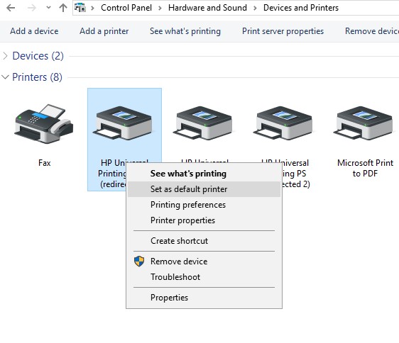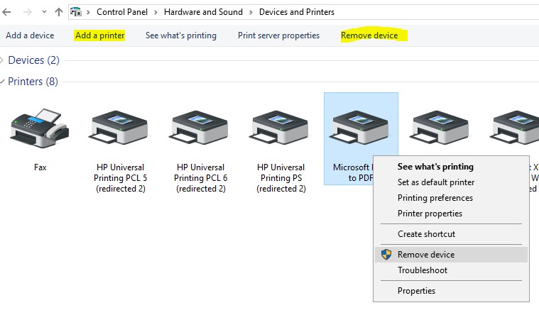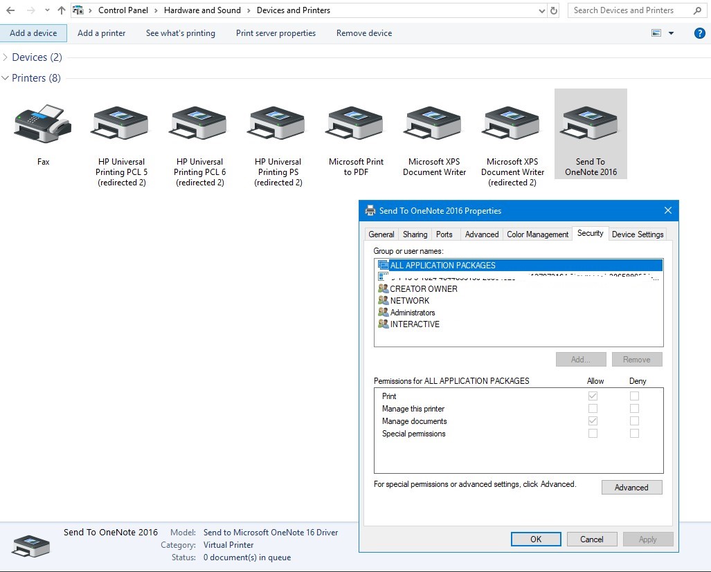 •Check the printer property settings and compare them to other device references that can be printed. On Control Panel >Hardware and Sound>Devices and Printers,right-click these virtual print devices, click Printing properties.