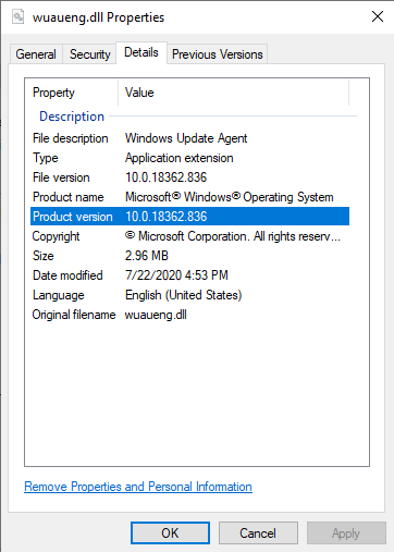 This would make sense as to why Windows updates gets confused and possibly why we get incorrect reporting on successful installations. Could you please explore this further and let me know if there are any ways to correct this short of upgrading to 2004?