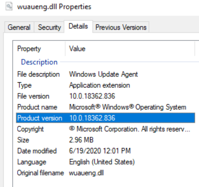 A pleasure chatting with you again! Is the wuaueng.dll for the Windows Update Agent? Is this what you are referring to? To me it just seems like poor design that WSUS bases it's info off of something that may or may not actually get updated. PDQ and other inventory managers seem to be able to tell the correct OS version/build, why is WSUS not able to?