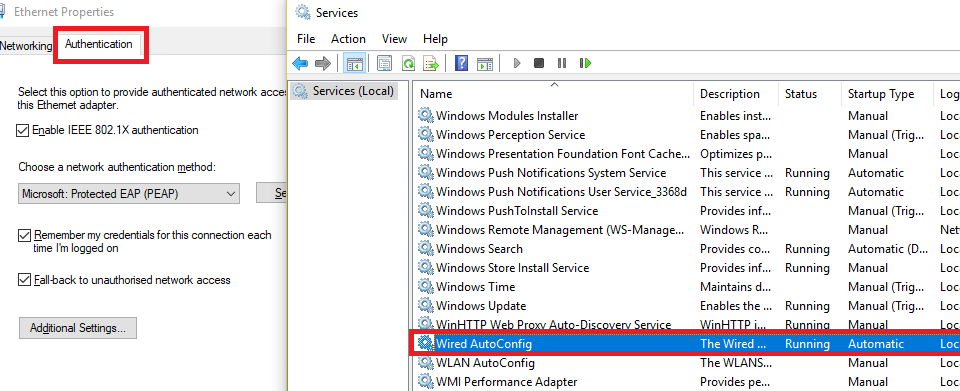 For Wired - Enable Wired AutoConfig on your Computer