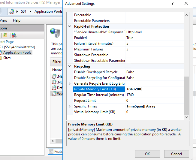 Anne, new SCCM 2012R2 Current Branch 1702 has been running flawlessly for almost a month. Getting all devices imported from a 2008R2 SCCM 2012 R2 1610. This morning, for some reason, I encountered the issue described in this post. I increased the wsus app pool private memory from 1843200 to 5529600 and it's been running fine all day. Thanks so much for your insight into this issue.