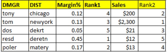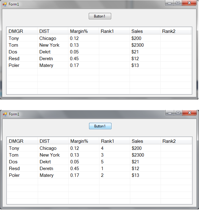 In this instance, for the Margin% Rank those go from highest to lowest. So all those values are added to a List(Of Double). The List(Of Double) is Sorted then Reversed then the highest value will be in Index 0 of the List(Of Double) with the lowest value at the last index in the List(Of Double). How you then use that would be up to you.