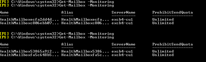 1. Run Get-Mailbox –Monitoring will list all the health mailboxes.