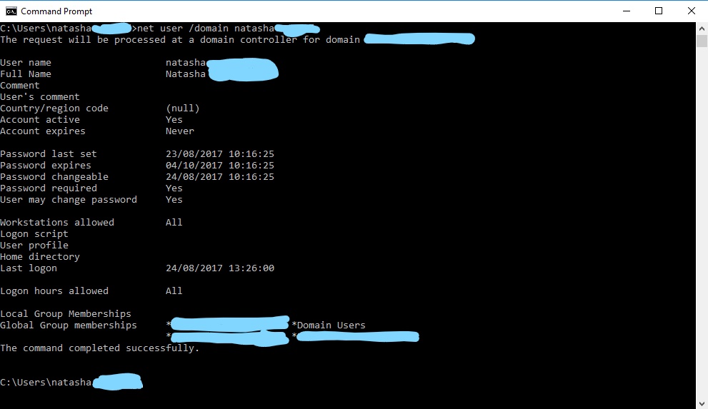 net user /domain <username> (To pull more detailed information for a specific domain user)