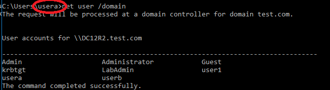 Below are examples of my concerns with the net user command, using an unprivileged user account: