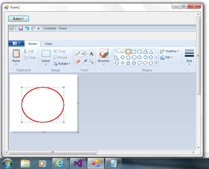 After having researched online, I still cannot find a working solution. I am currently trying to embed paint in a panel on another form (Form2) to the one that has the button which will activate the code (Form1).