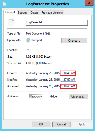 ""besides, and "lastaccesstime" is also older than "LastWriteTime" - I've never seen it in Windows 2008/7" - of course you're right.