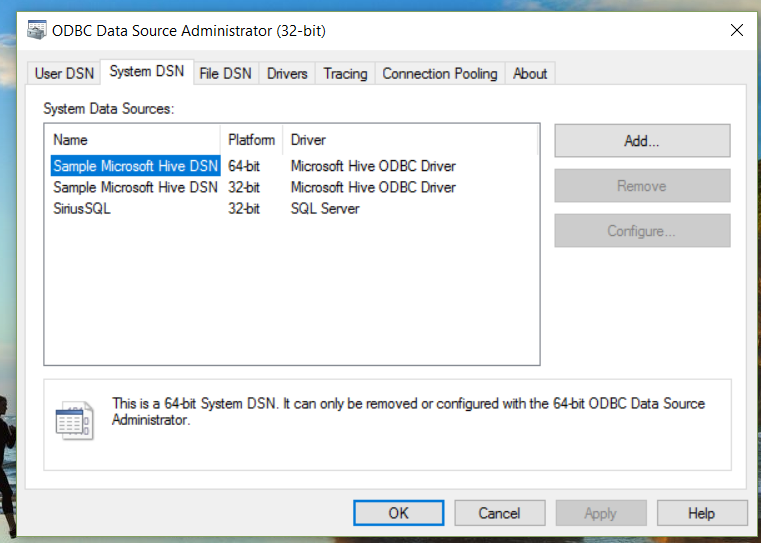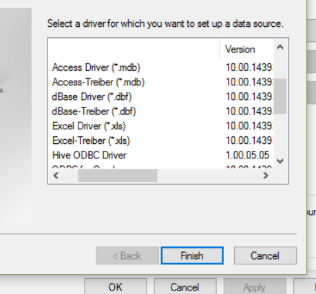 So it doesn't look like I have the right driver installed for 32 bit version. I need to use the driver for xlsx file from 32 bit application (Visual FoxPro). If there is no better link for download, I think I need to try that, but someone told me that 32 bit link didn't work for 64 bit Windows 10.