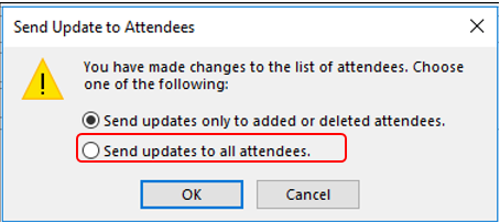 When sending updates, please select “Send updates to all attendees”.