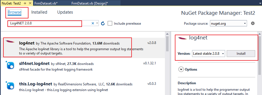I can't find a document on how to install Log4NET 2.0.8 on Visual Basis 2017.