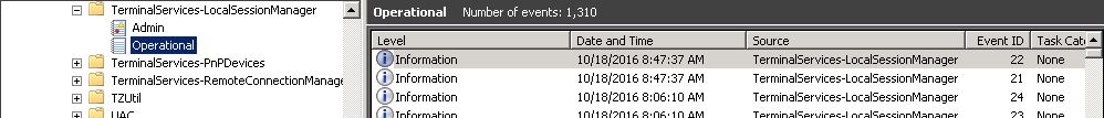 Remote Desktop Services: Session logon succeeded:... 10/18/2016 11:56:49 AM