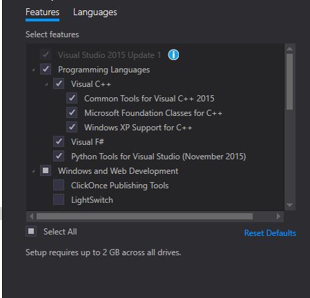 I installed Visual Studio 2015 Community on Windows 7, but Many of the .h-files are missing - including math.h. As I understand I should install SDK, but after doing so the problem persists. How should I go about fixing this?