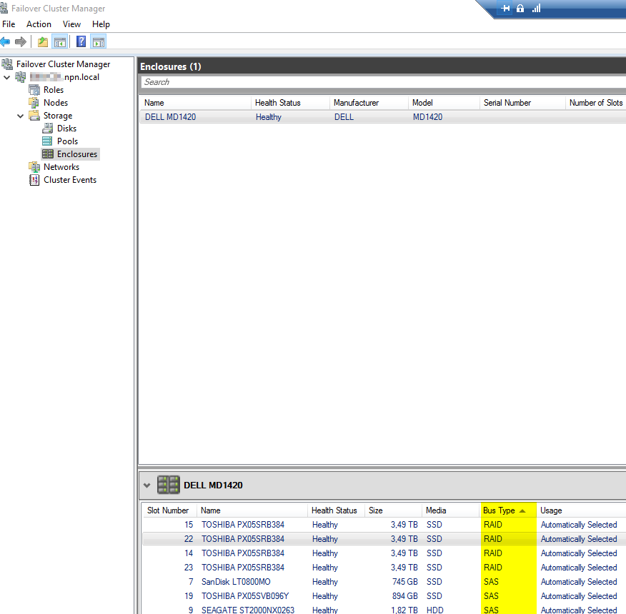 The only noticable difference is the enclosure says the Bus Type is RAID when the storage pool is owned by the PERC H830 node see picture: