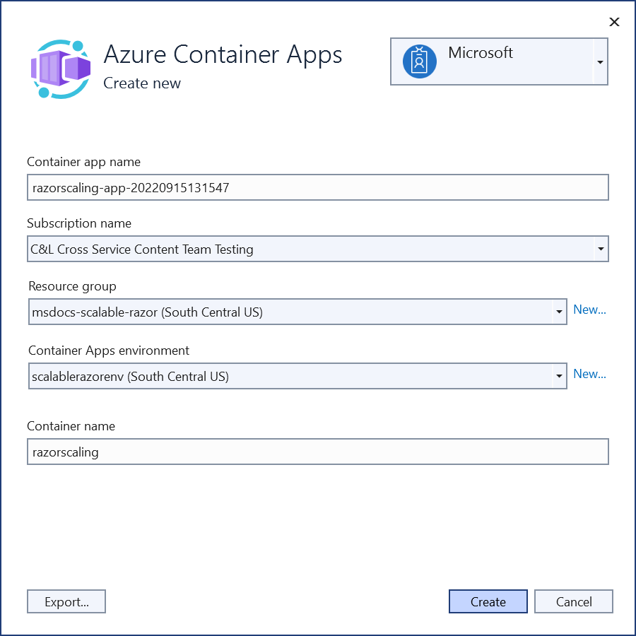 - Subscription: Select the same subscription that you chose for the container app.