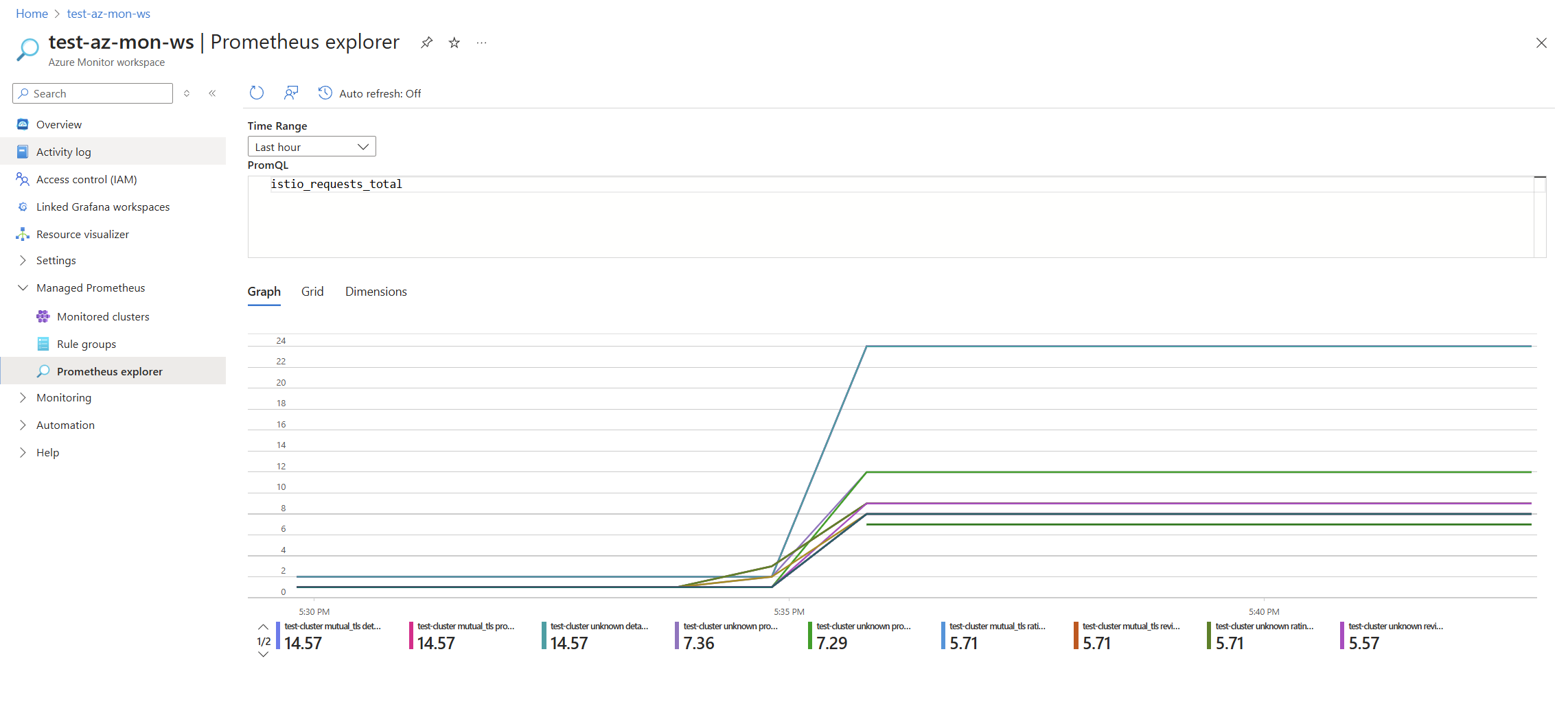 This guide explains how to set up and use Azure Managed Prometheus to collect metrics from Istio service mesh add-on workloads on your Azure Kubernetes cluster.