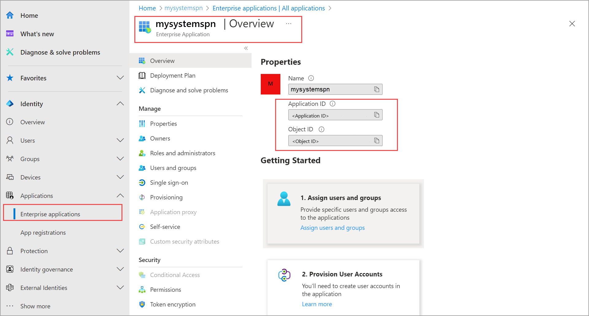 Under properties, copy the Application (client) ID and the Object ID for this service principal.