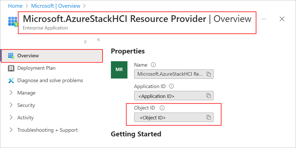| hciResourceProviderObjectID | Object ID of the Azure Local Resource Provider. For more information, see Get the object ID for Azure Local Resource Provider. |