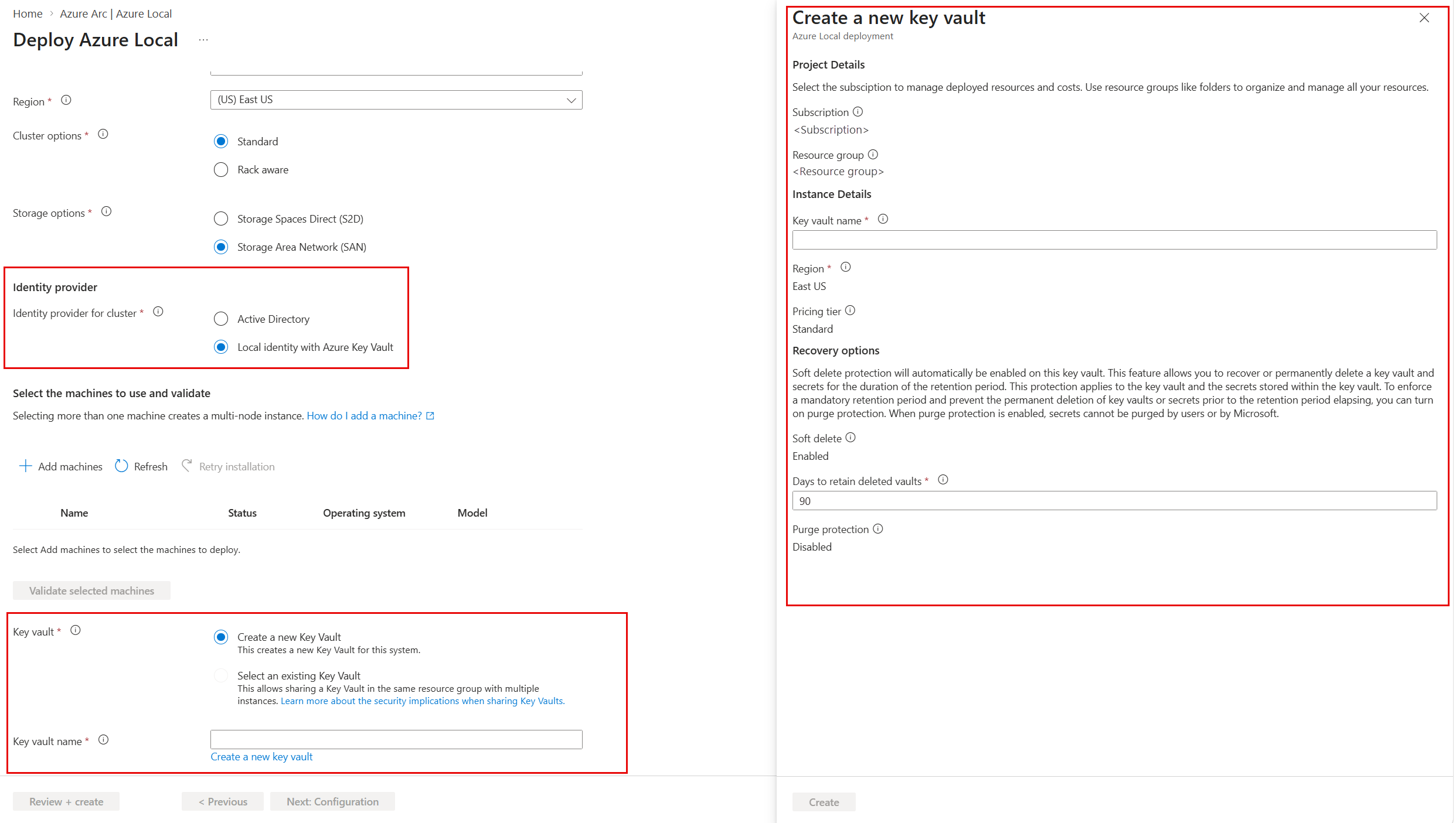 In addition to Active Directory (AD) based deployment, Azure Local supports deployment through local identity with Azure Key Vault, previously known as AD-less deployment.