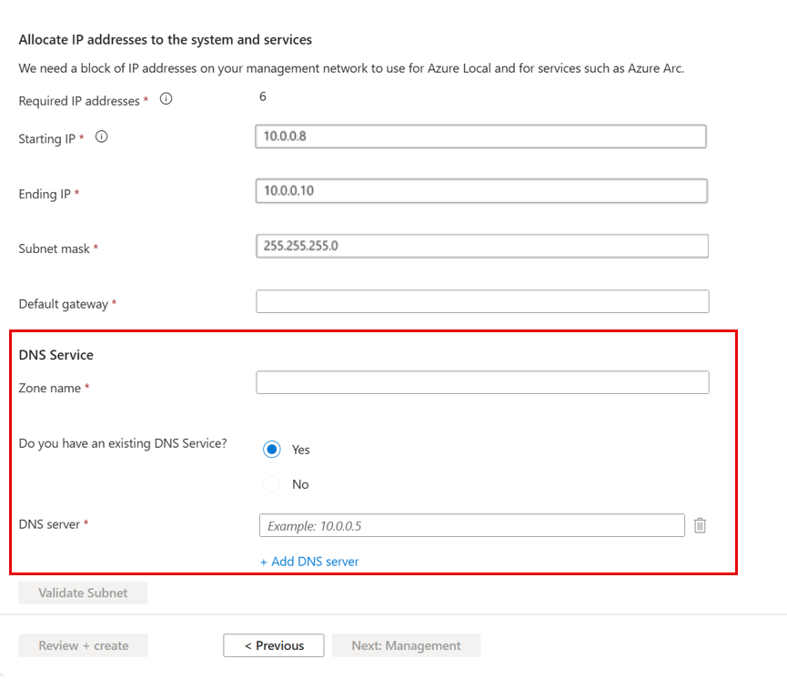 Have a DNS server with a properly configured zone. This setup is crucial for the network to function correctly. See Configure DNS server for Azure Local.