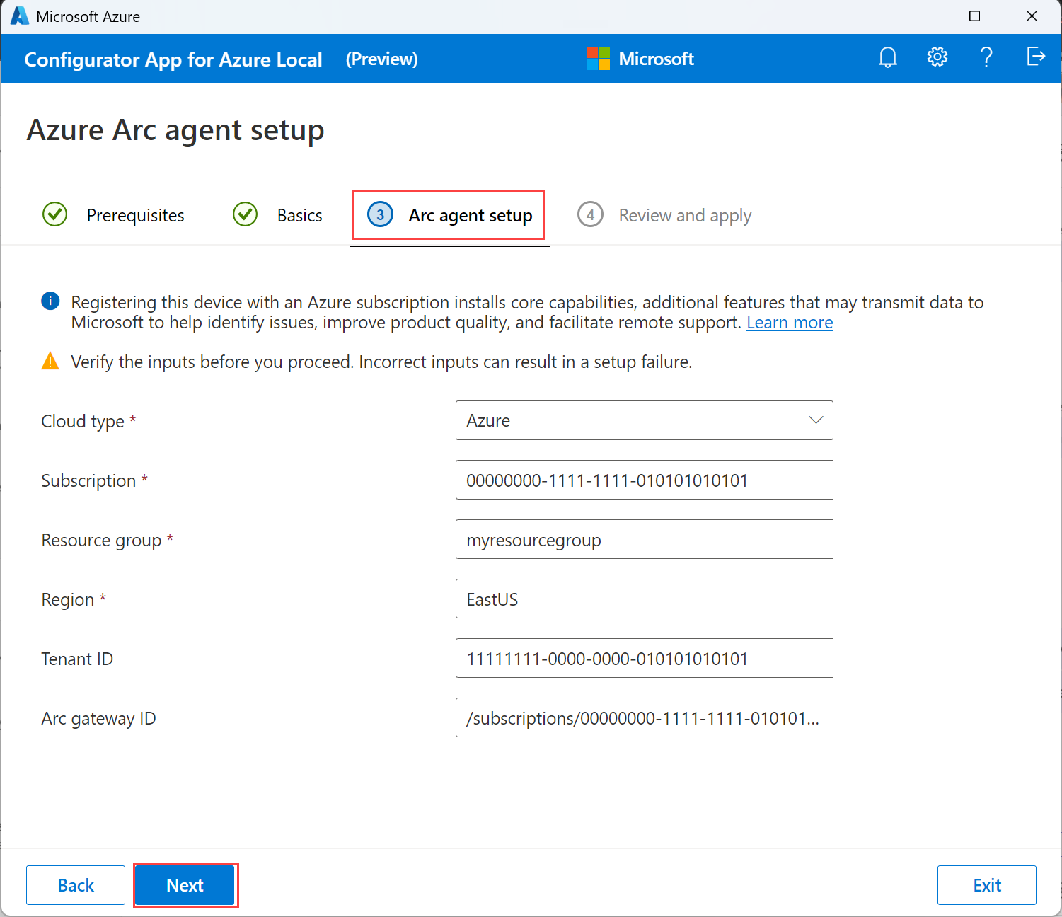 • Set up via the Configurator app: Configure Azure Arc gateway via a user interface. This method is useful if you prefer not to use scripts or if you want to configure the registration settings interactively.