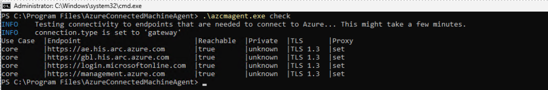 C:\program files\AzureConnectedMachineAgent>.\azcmagent check