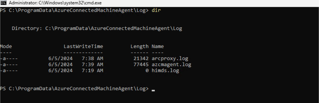 2. Open the Arc gateway log to monitor which endpoints are being redirected to the Arc gateway and which ones continue using your firewall or proxy. You can find the Arc gateway log at: c:\programdata\AzureConnectedMAchineAgent\Log\arcproxy.log.