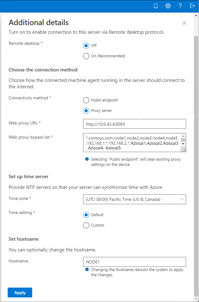 $ProxyBypassList = "localhost,127.0.0.1,*.contoso.com,machine1,machine2,machine3,machine4,machine5,192.168.*.*,AzureLocal-1"